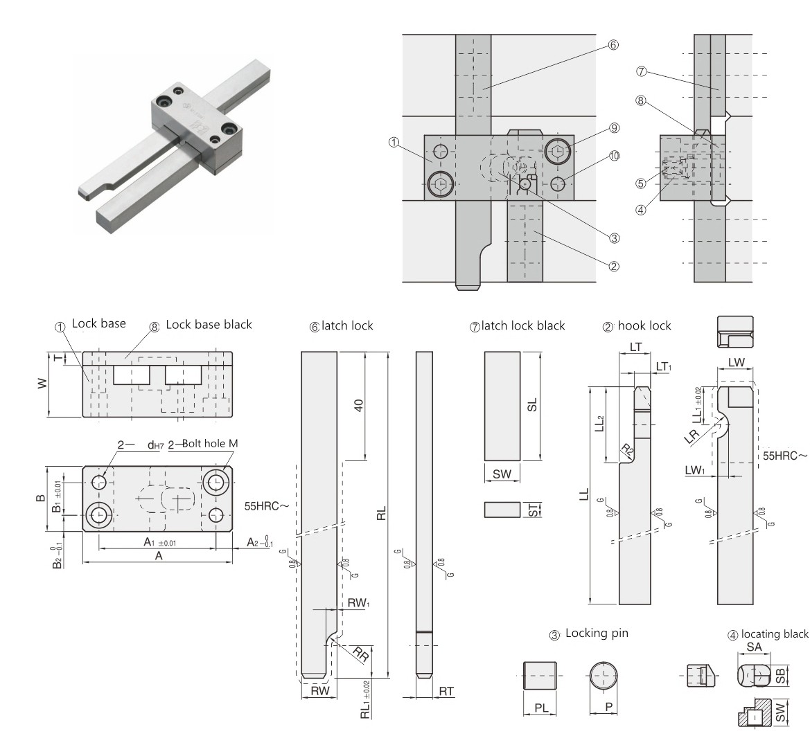1、安装锁紧座,要求平行于分型面安装;